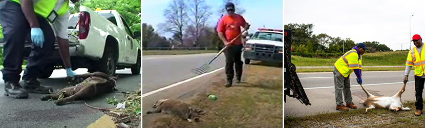 Montgomery roadkill removal is often performed by the Montgomery division of street maintenance, department of transportation, or sanitation department, etc. Don't call the Montgomery police department. Ff the dead deer body is on private property, removal is handled by the citizen or by a private company, such as ours: Montgomery Dead Animal Removal Company